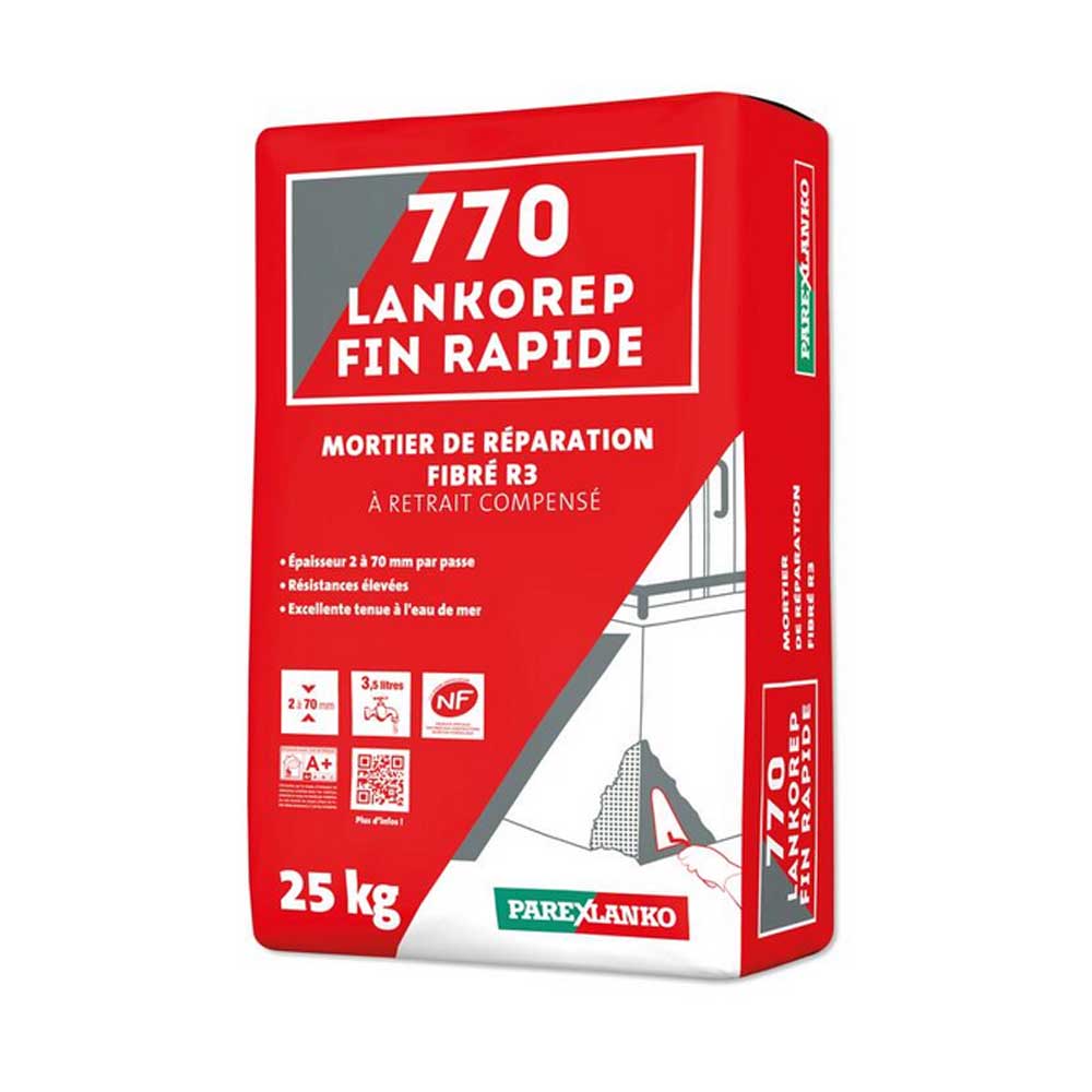 770 LANKOREP FIN RAPIDE 25KG, Fin, Rapide, Mortier, Réparation, Béton, Réparation, Peut s’utiliser dans les cas où les aciers de structure sont visibles